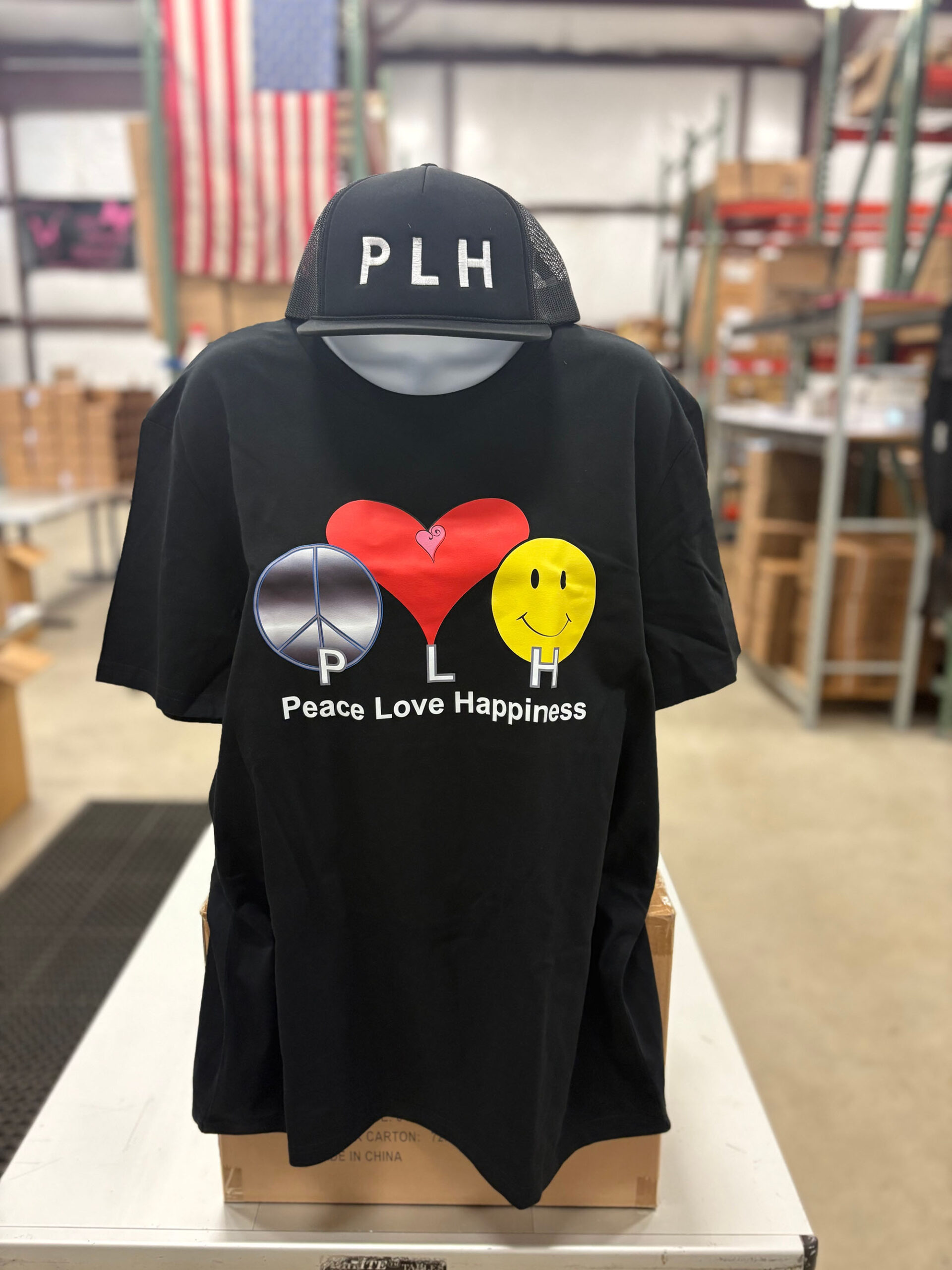 6-panel trucker hat with 3D embroidery of “PLH” letters on the front.
